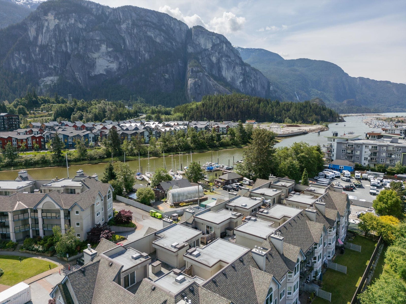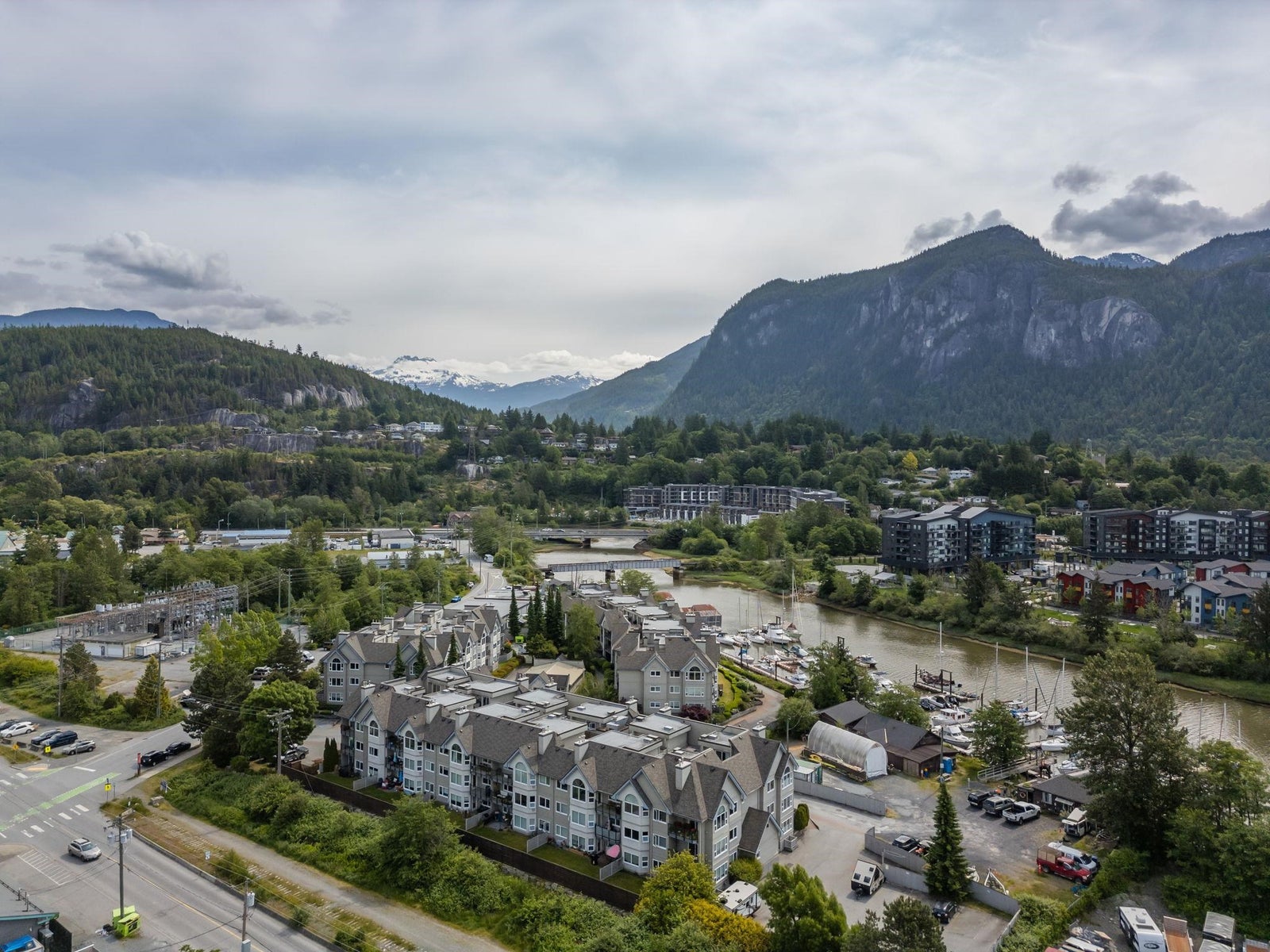 Craftsman flourishes, high-end finishes, and expansive views highlight this fully renovated top floor corner unit at Squamish’s much-desired Marina Estates. Featuring two bedrooms, two full baths, a spacious loft, and soaring 20 ft vaulted ceilings above the living and dining rooms, this north-west situated unit has been expertly updated from top to bottom. Enjoy breathtaking mountain views from three sides, soak up the sun on your private rooftop terrace, express your inner chef in the expansive custom kitchen, cozy up beside your gas fireplace, enjoy the walk-thru closet and custom ensuite of your primary bedroom - and do it all within the peace and privacy that only a top floor corner unit can provide. Open House Saturday November 22, 2-4